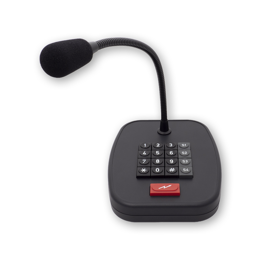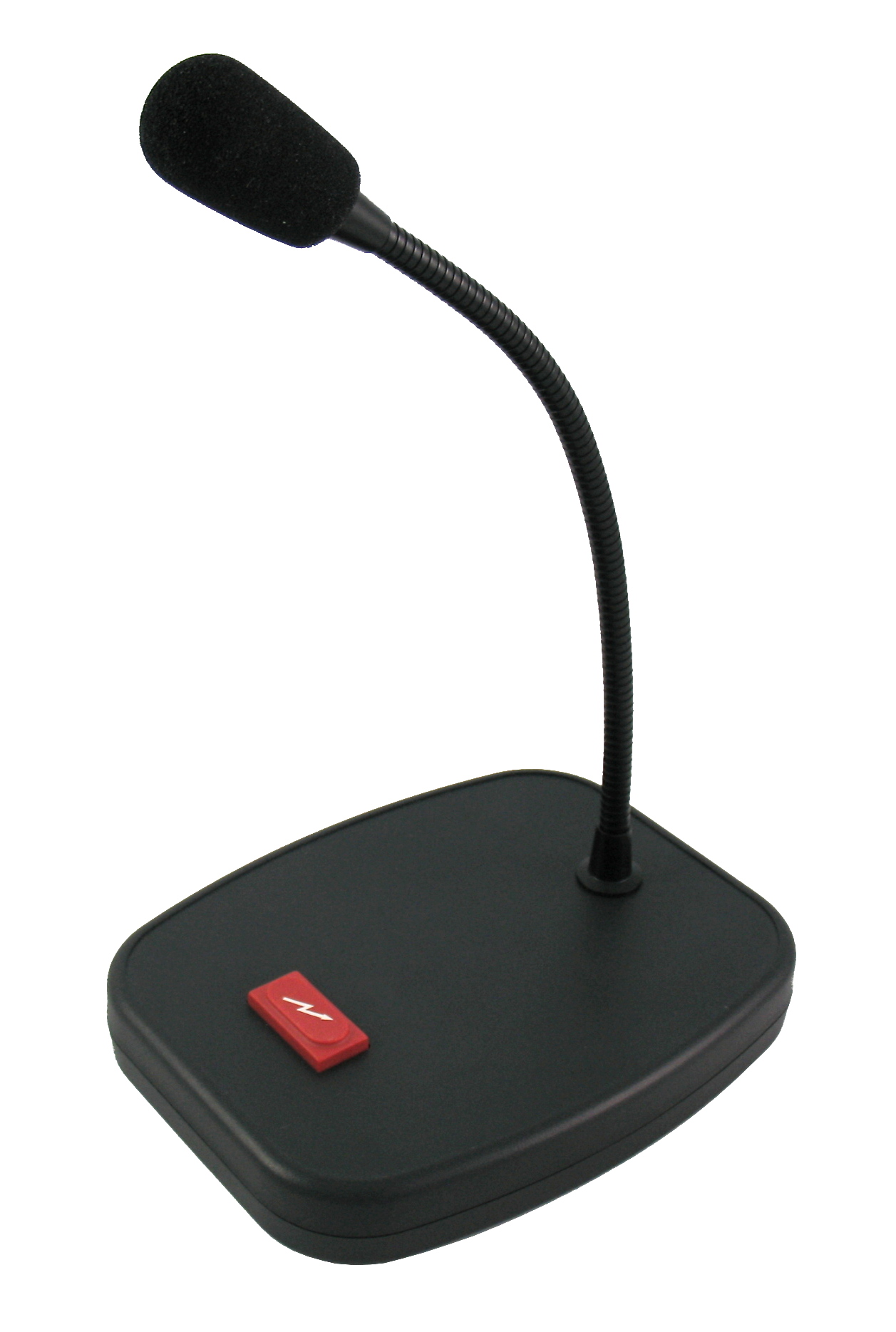The desktop microphone with universal interface is a unit supporting several applications (PA systems, radios, conference rooms, for example).